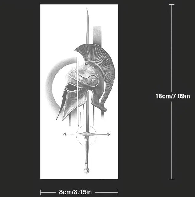 Semi-Permanent Tattoo - Waterproof Realistic Sword-Wielding Warrior Design, Black & White Artistic Temporary Tattoo for Men & Women, Durable Plant-Based Look for Body Art, Party Tattoos, Bold Statement Piece, Highquality Print
